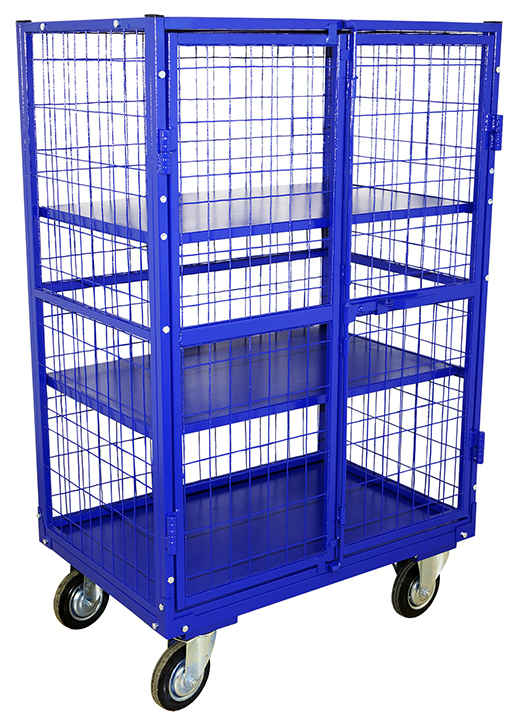 Шкаф с двумя открываемыми дверцами (по стороне 1200 мм). Дно и верх металлический, сплошной лист. Заполнение бортов и створок дверей, сетка с ячейкой 50 х 100 х 3,0 мм. Створки дверей фиксируются и снабжены проушинами для навесного замка. В комплекте полный набор метизов, для установки платформенных колес и сборки шкафа. Покраска порошковая.
